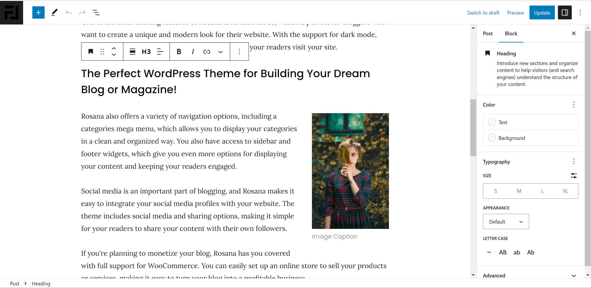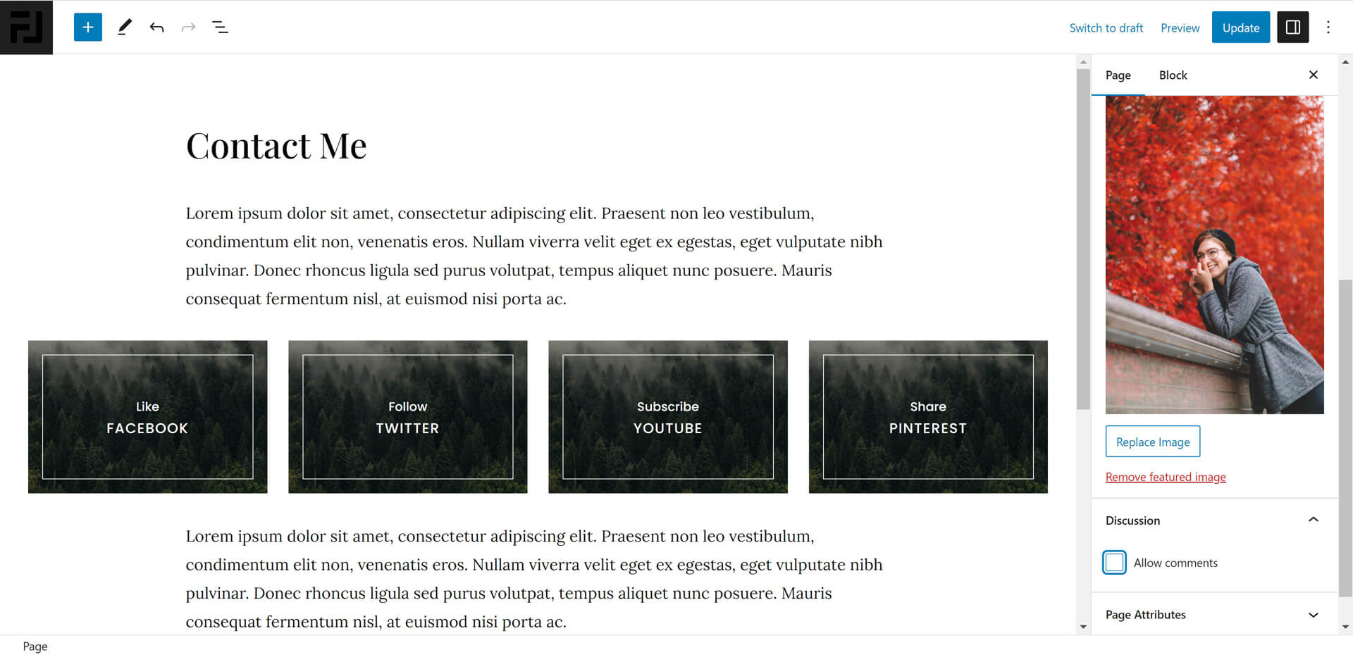 Build pixel-perfect pages with Gutenberg's content system and Rosana's 12 custom blocks.