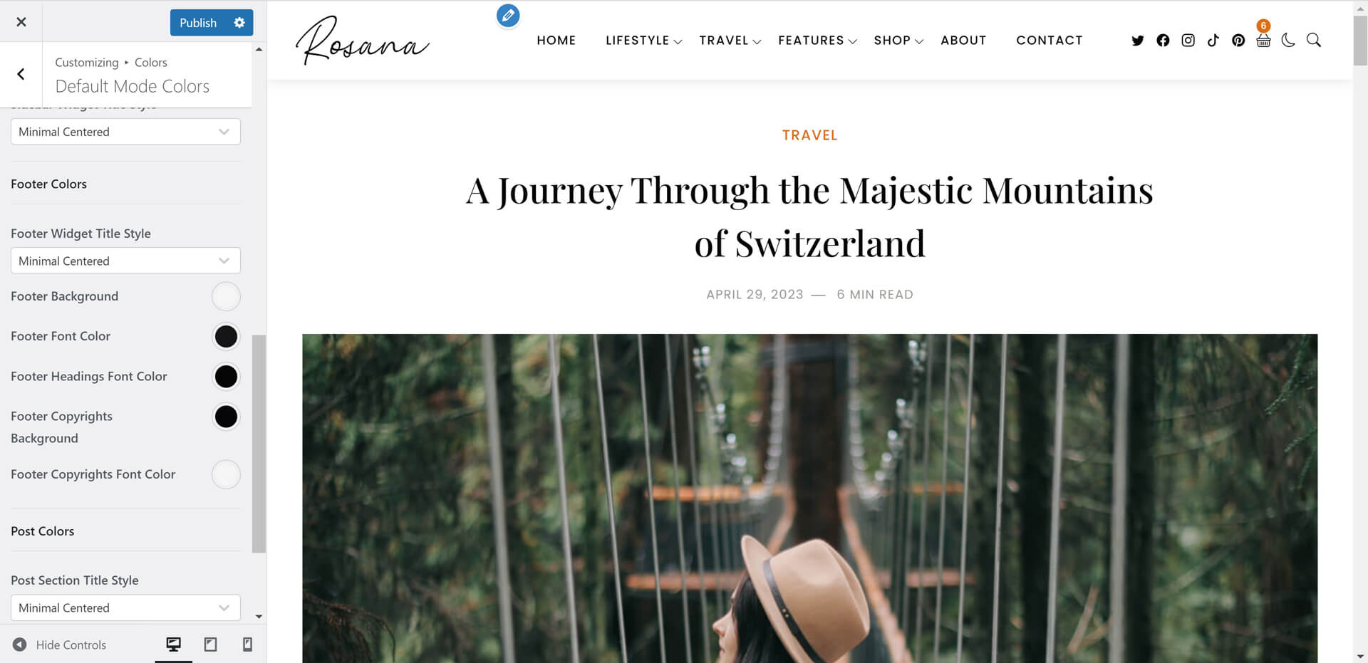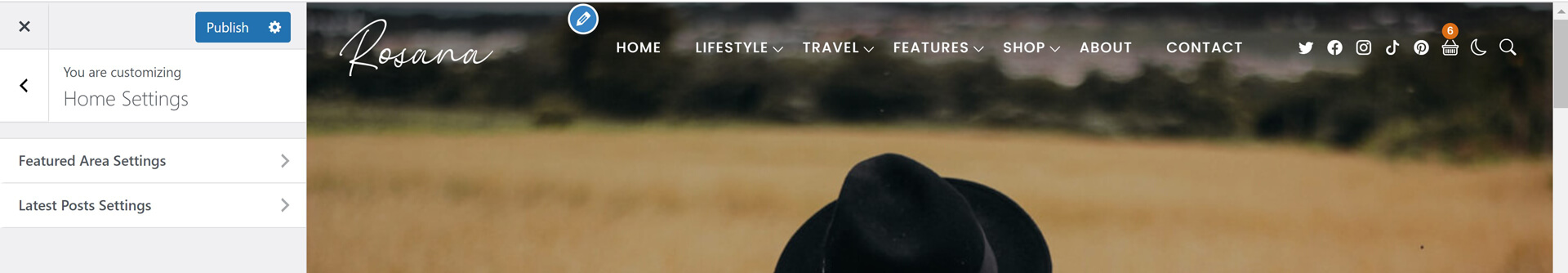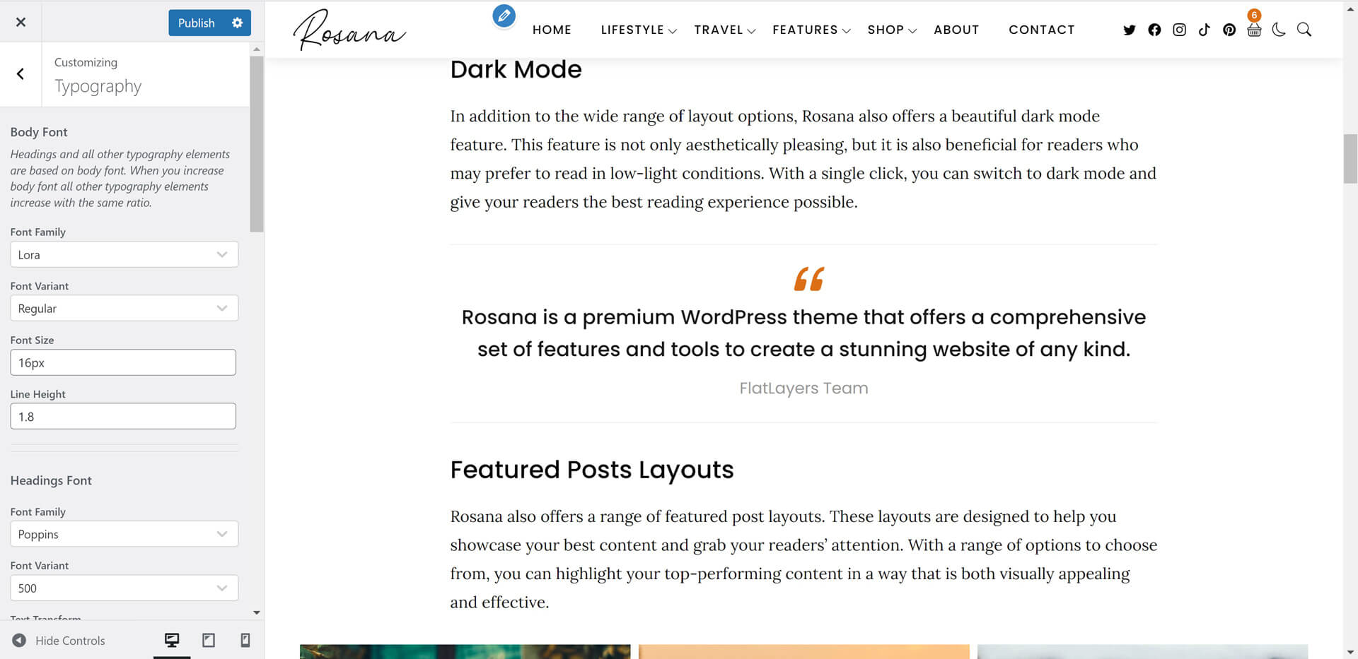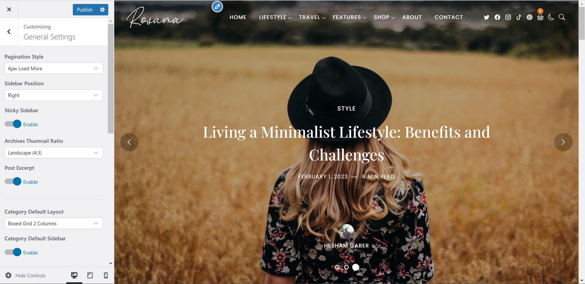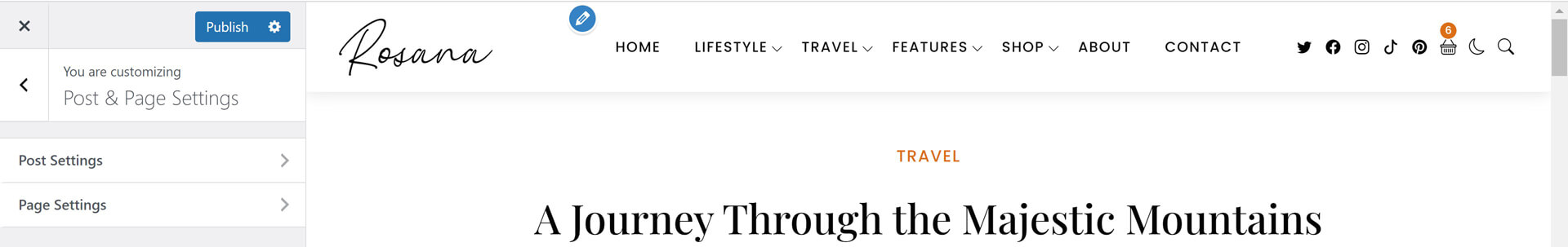 Rosana theme powerful customiztion panel will help you to change options, colors, typography and see change in live preview before saving. Options are arranged to help you understand and use it.