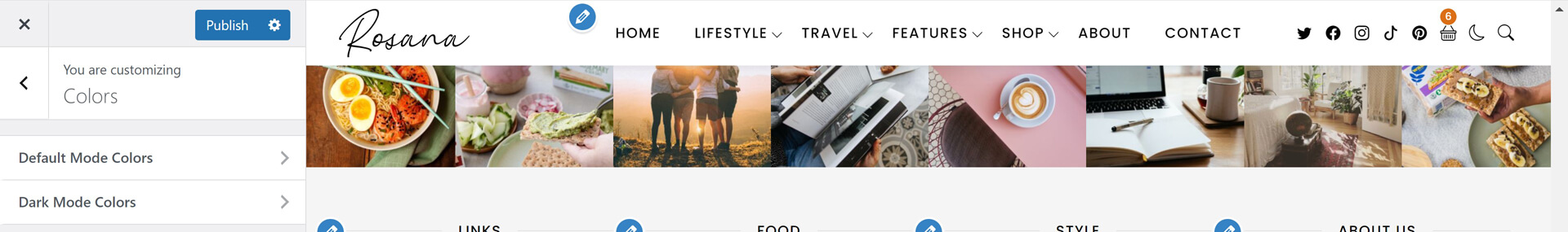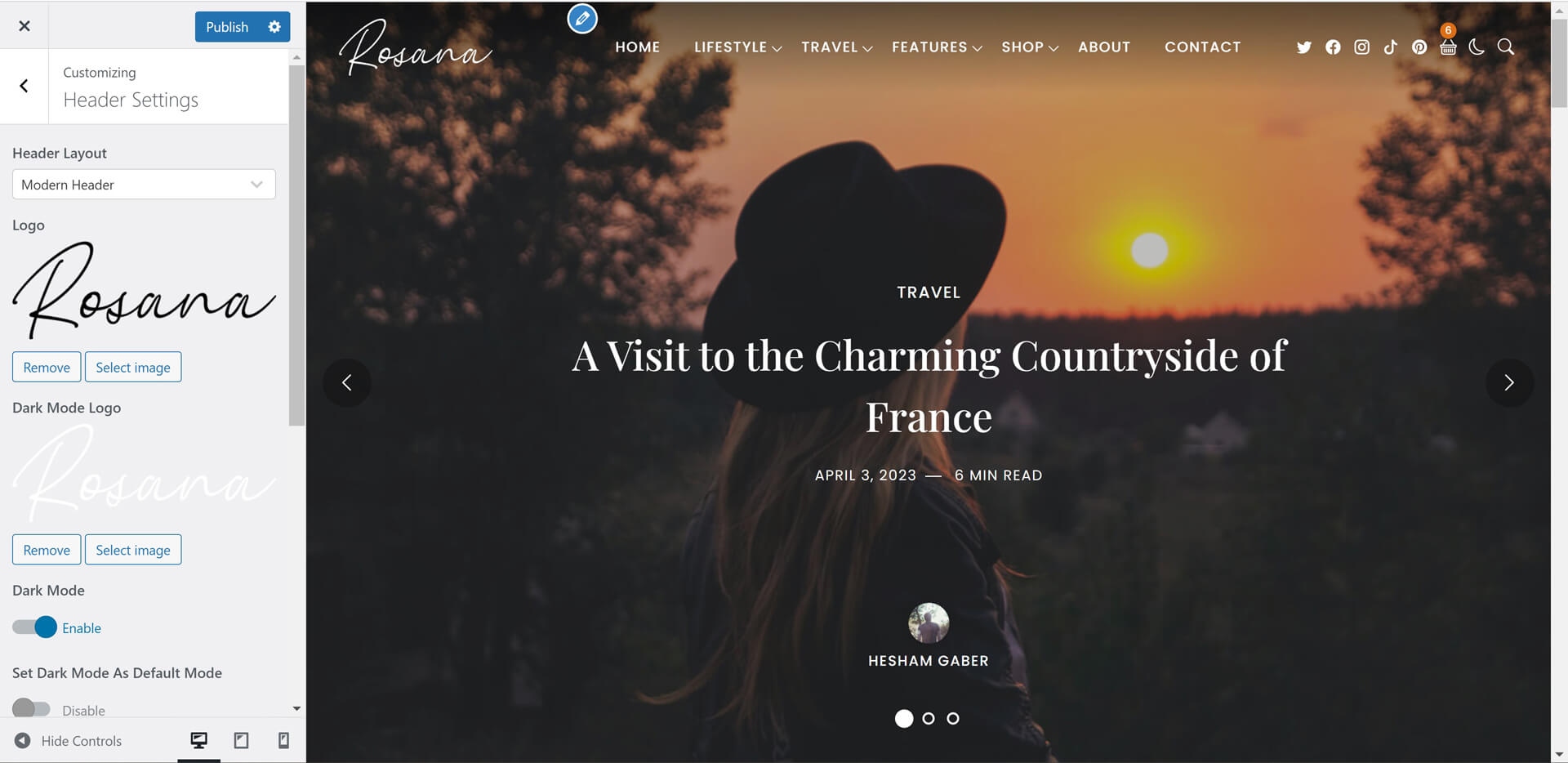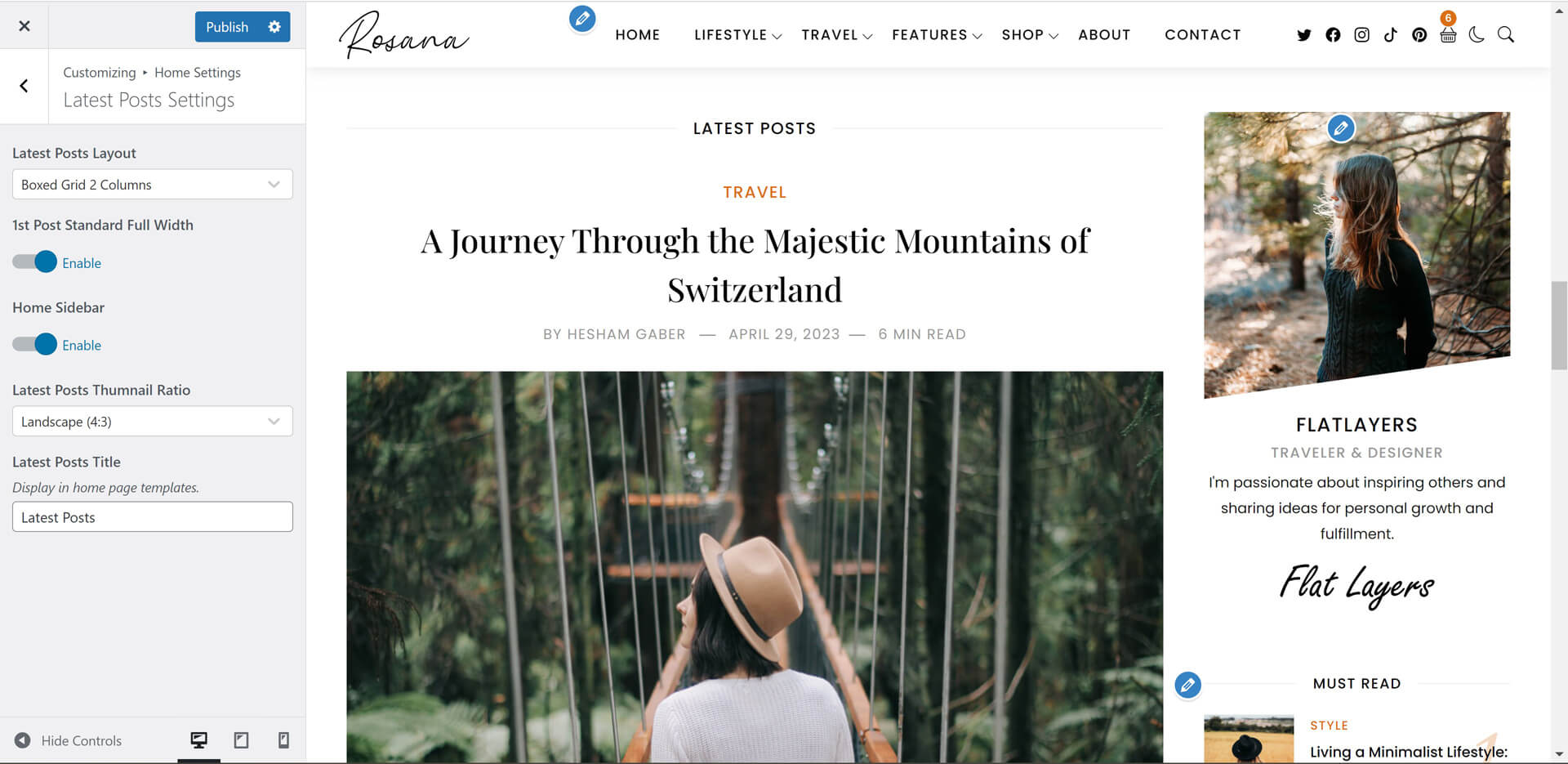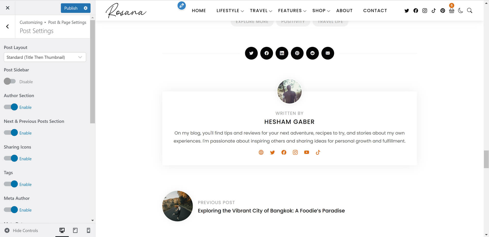 Rosana theme powerful customiztion panel will help you to change options, colors, typography and see change in live preview before saving. Options are arranged to help you understand and use it.