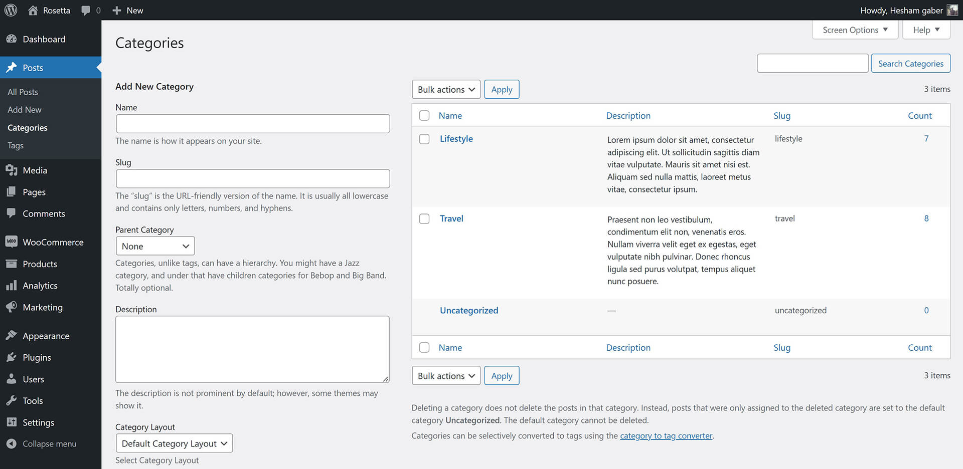 Rosetta theme comes with XML demo content file "rosetta-demo-data.xml" you will find it inside theme package folder. To import it: