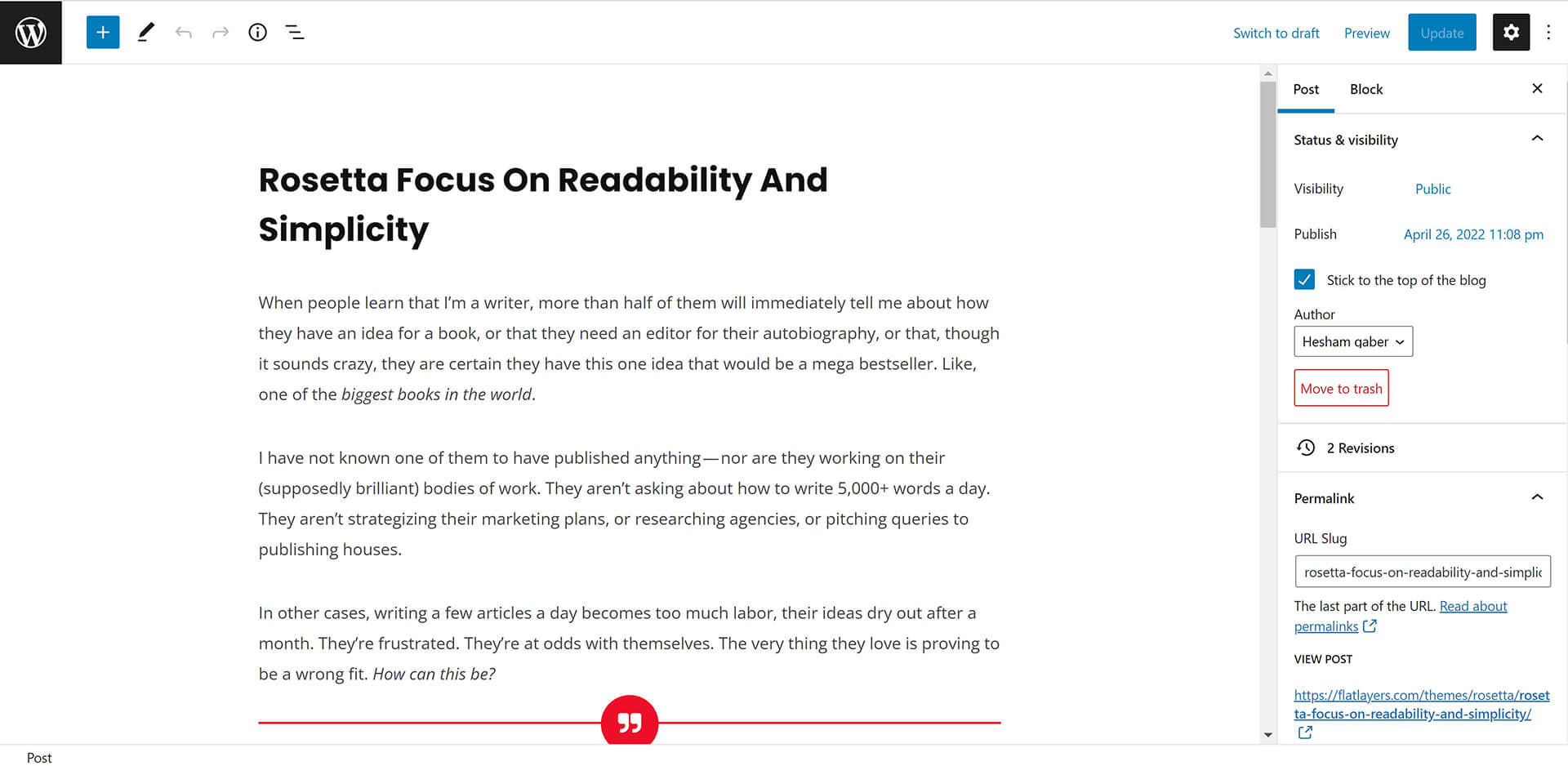 Rosetta theme powerful customiztion panel will help you to change options, colors, typography and see change in live preview before saving. Options are arranged to help you understand and use it.