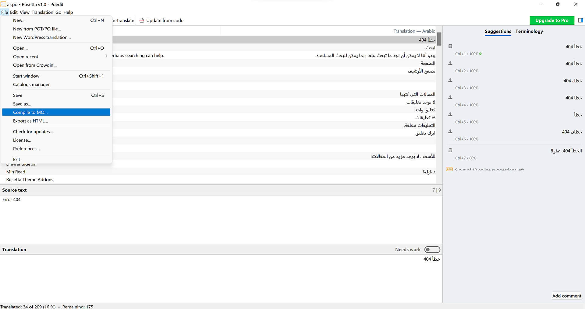 Save .po file in same folder and compile file to .mo and save in same folder.
