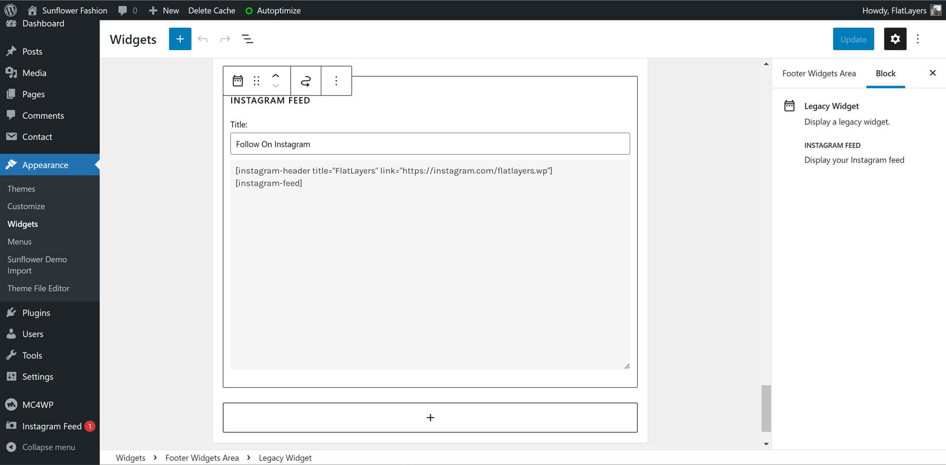 MailChimp for WordPress and Smash Balloon Instagram Feed widget always display in full width.