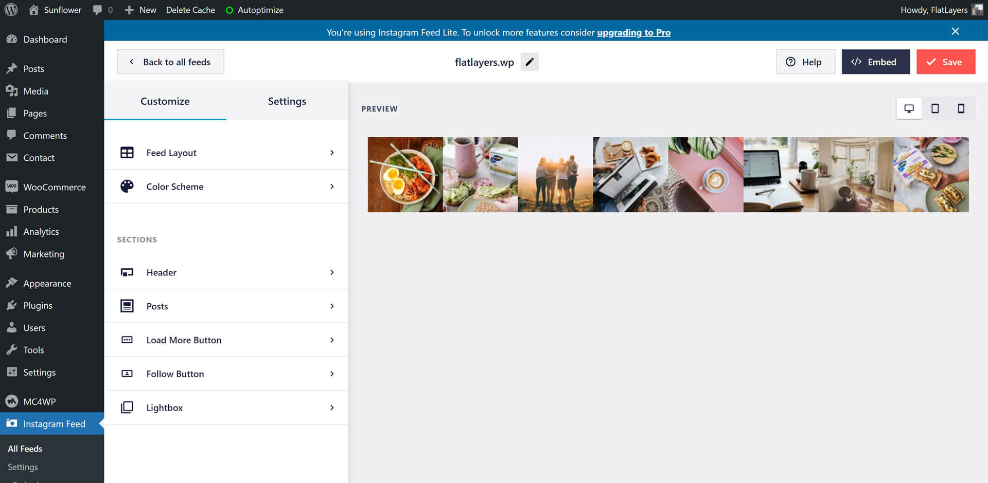 Regenerate Thumbnails You must use this plugin if you uploaded pictures before installing Sunflower theme. After installing and activating Regenerate Thumbnails.